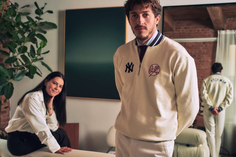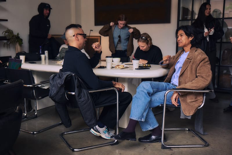 Though Alex credits Ivana for the design direction of Rhythm Zero, he understands fashion as a space where his creativity thrives. Dressed in a double-breasted blazer over an Aime Leon Dore x Yankees sweater, Alex quickly got to work styling a mannequin he keeps nestled in the corner of the room.