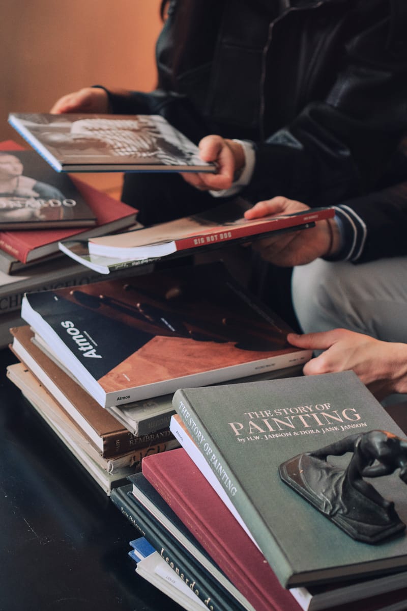 Sprawled across the café’s communal tables, stacks of old and new art books come directly from the owners’ personal collection. Shuffled by the many hands of their customers, some covers show scuffs, while others are stained with coffee dribbles.