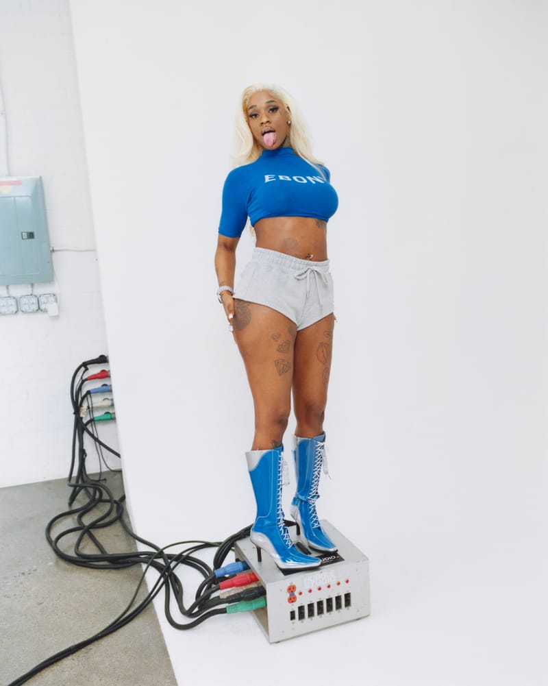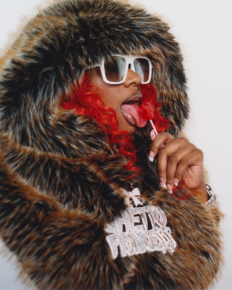Sexyy Red isn’t just fashionable—she’s fashionably late, too. And for a rap diva whose star rises higher by the day, is there any other way to be? The LA Arts District photo studio where I’m supposed to interview Sexyy on this sunny February afternoon isn’t the worst place to hold court, either, and the extra time gives me a moment to reflect. Sexyy’s world moves fast—chart-dominating singles, A-list collaborations, and headline-grabbing moments unfold faster than fans (and haters) can keep up.